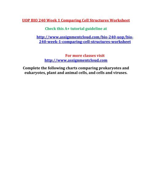 Uop Bio 240 Week 1 Comparing Cell Structures Worksheet