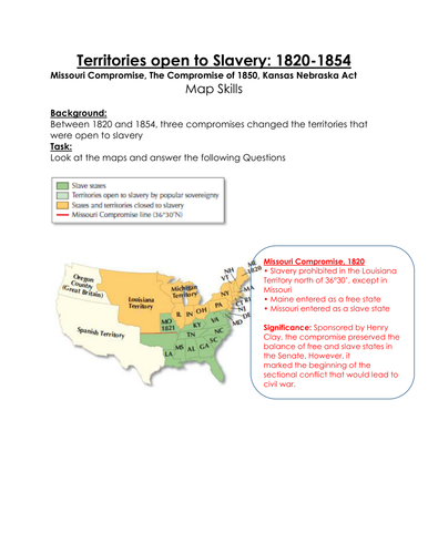 Compromise Of 1850 Map Worksheets Teaching Resources Tpt