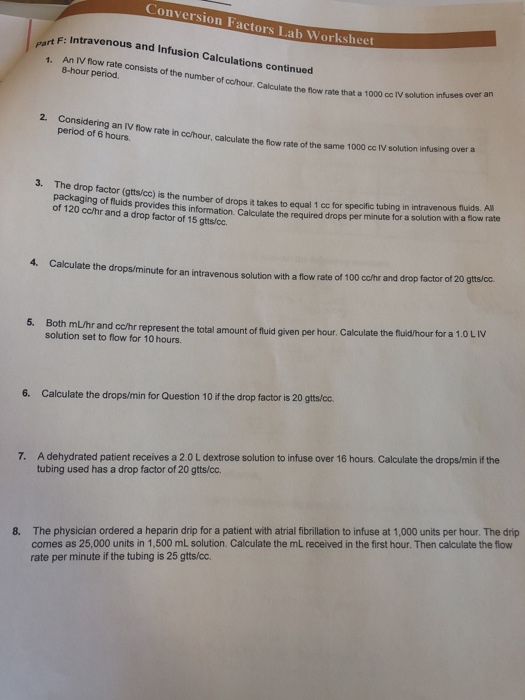 Solved Conversion Factors Lab Worksheet Ous And Infusion