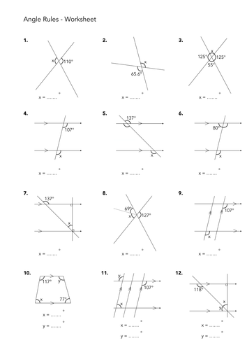 Parallel Line Angle Rules Worksheet By Jwmcrobert Teaching