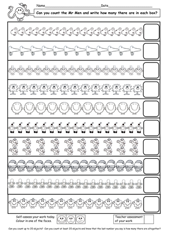 Mr Men Counting Numbers Up 20 Teaching Resources