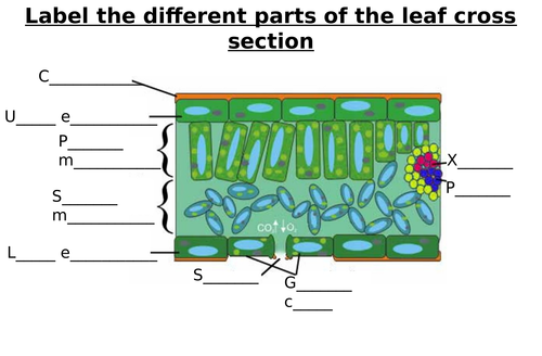 Leaf Cross Section Diagram To Label With Answers Teaching Resources
