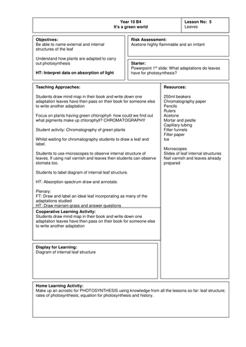 Leaf Cross Section Teaching Resources