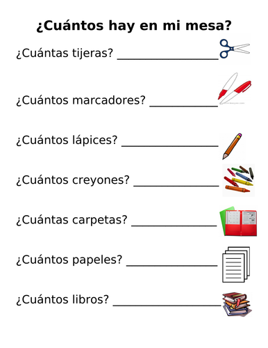 Spanish Cuantos Cuantas Hay W School Objects Worksheet School