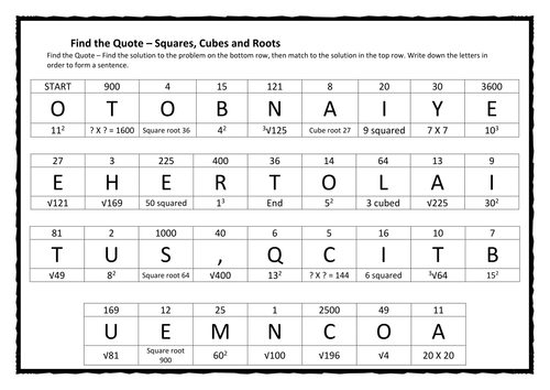 Find The Quote Squares Cubes And Roots Teaching Resources