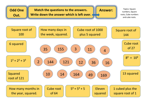 Odd One Out Worksheet Square And Cube Numbers With Square And