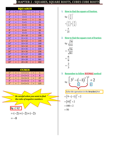 Squares And Cubes And Roots Notes Worksheets Teaching Resources