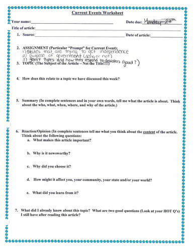 Social Studies Current Event Worksheet Worksheet For 7th 12th
