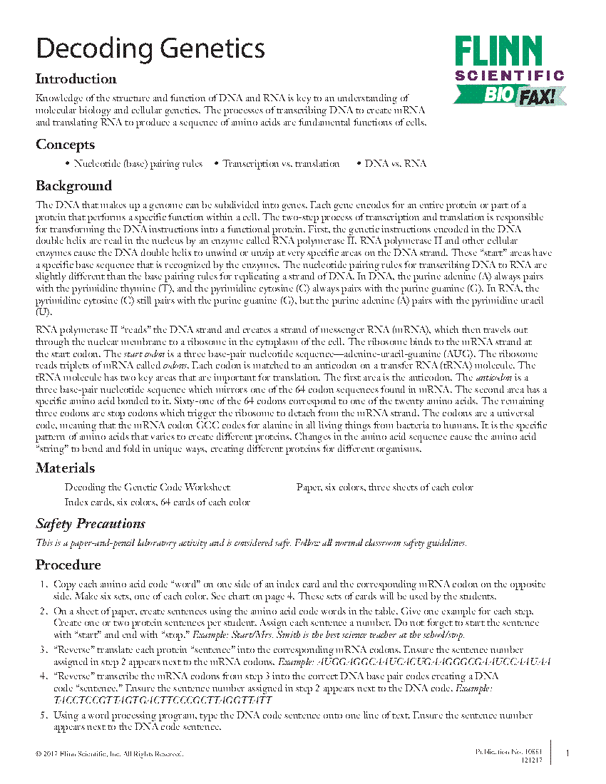 Guided Inquiry Skills Lab Chapter 13 Lab From Dna To Pages 1
