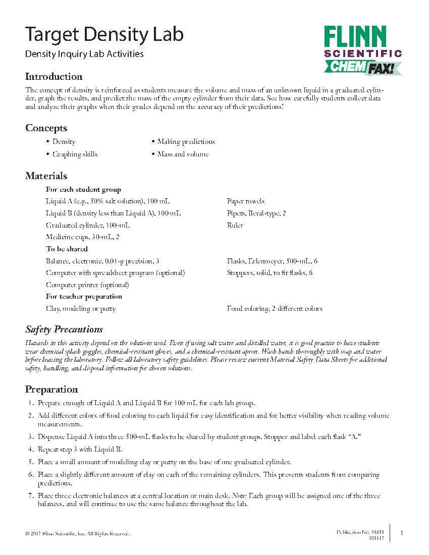 Density Worksheet And Lab Activity To Practice And Apply Concepts