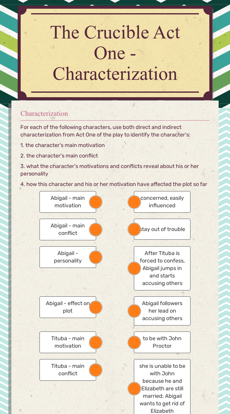 Characterization Worksheet Direct Indirect Characterization