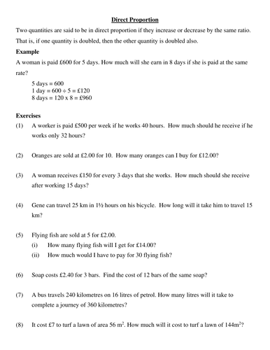 Direct And Inverse Proportion Worksheet No 2 With Solutions Payhip