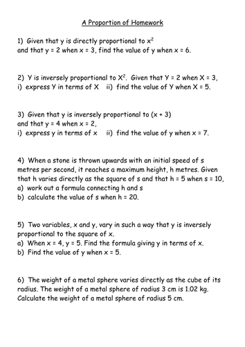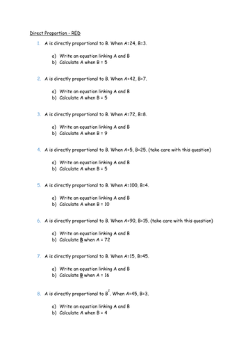 Direct And Inverse Proportion Worksheets Teaching Resources