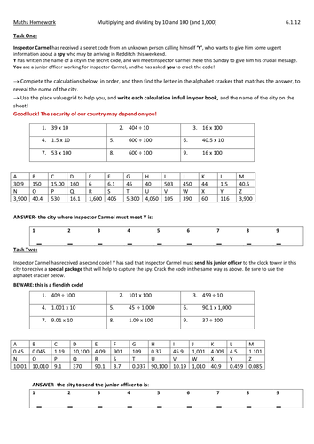 Worksheet Homework X Dividing By 10 100 1000 Teaching Resources