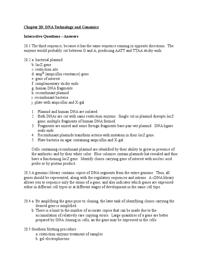 Recombinant Dna Technology Worksheet