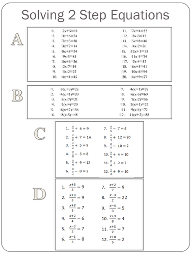 This Collection Of Worksheets Incorporates One Step Equations Two