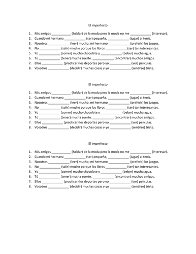 El Imperfecto English Esl Worksheets For Distance Learning And