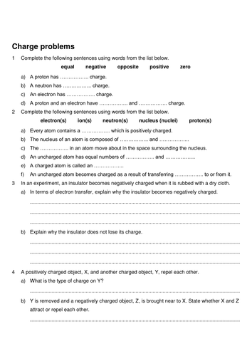 Charge And Electricity Worksheet For 9th 12th Grade Lesson Planet