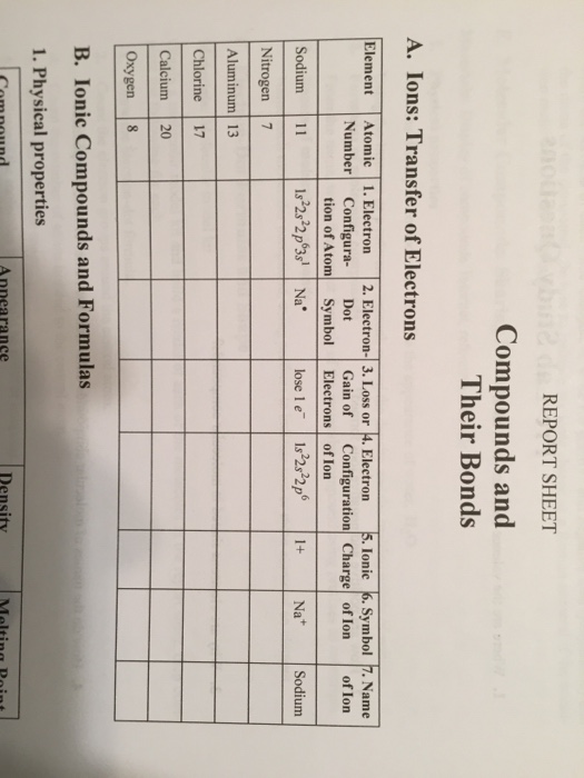 Solved Report Sheet Compounds And Their Bonds A Ions Tr