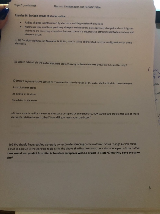 Solved Topic 2 Worksheet Electron Configuration And Perio