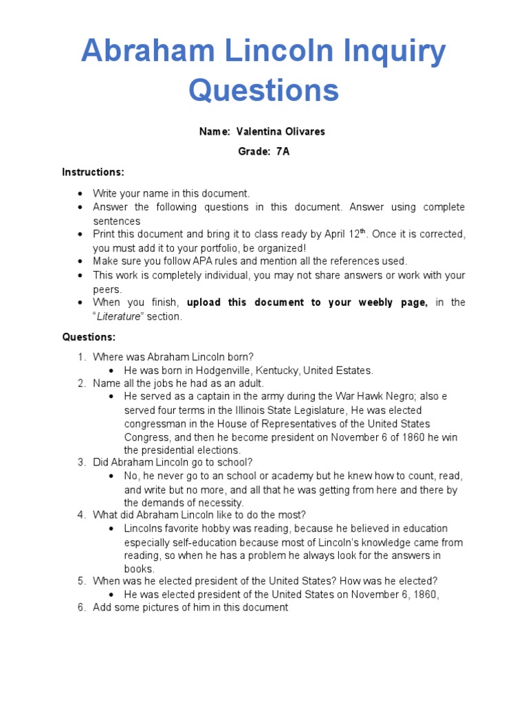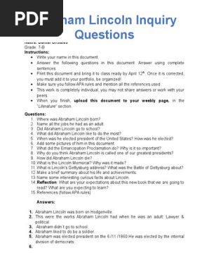 Abraham Lincoln Biography Worksheet For Kids Edumonitor
