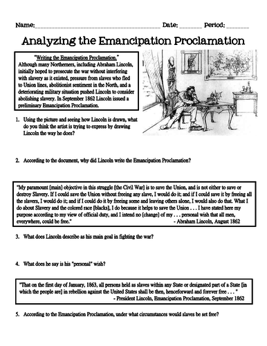Analyzing The Emancipation Proclamation Worksheet Answers