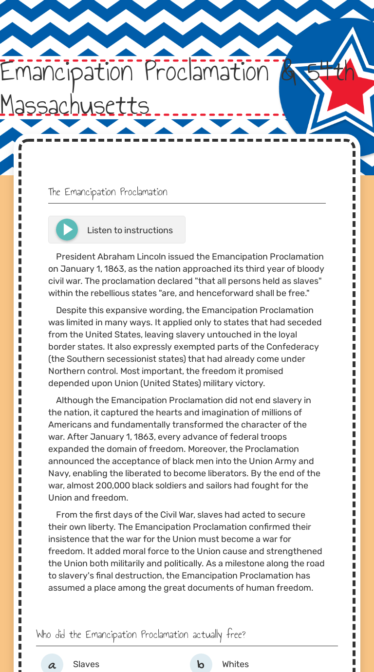 Emancipation Proclamation Reading Comprehension Worksheet Edhelper
