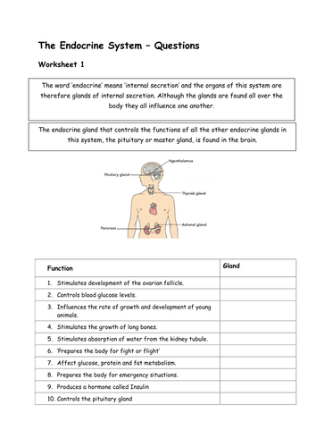 Gcse Biology Endocrine System Worksheet Pack Animal Hormones