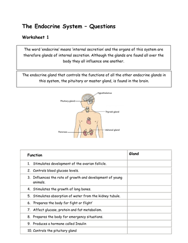 Endocrine System Worksheet Middle School
