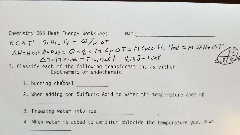 Solved Chemistry 065 Heat Energy Worksheet Name Heat Ever